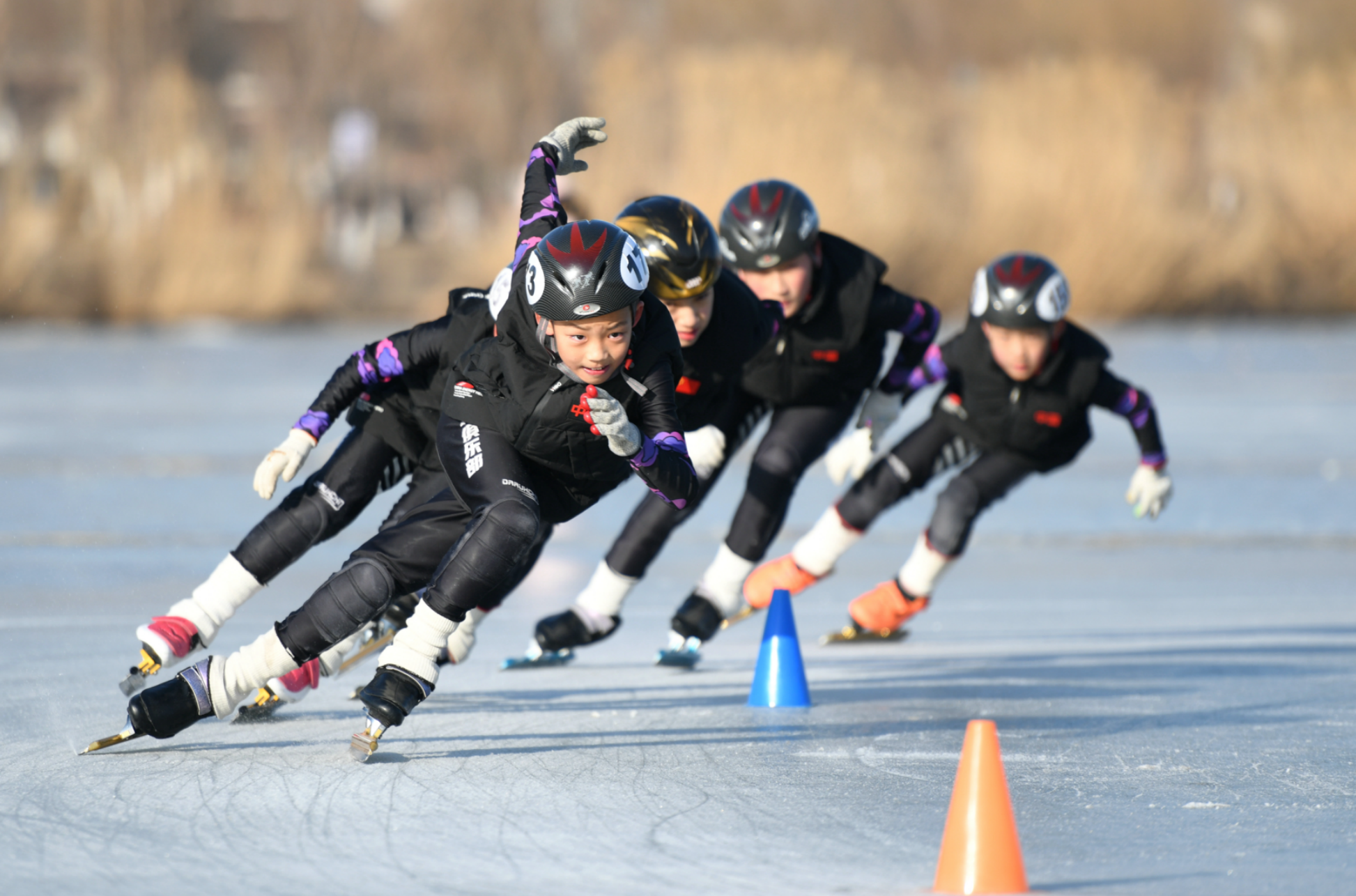 宁夏持续开展一系列冰雪赛事和冰雪嘉年华活动,以冰雪运动聚“流量”,以“商文旅农体酒”融合发展造“留量”。 图为全国青少年速度滑冰马拉松宁夏站比赛中,宁夏速滑小将奋勇争先,展现冰雪运动风采。 自治区体育局供图