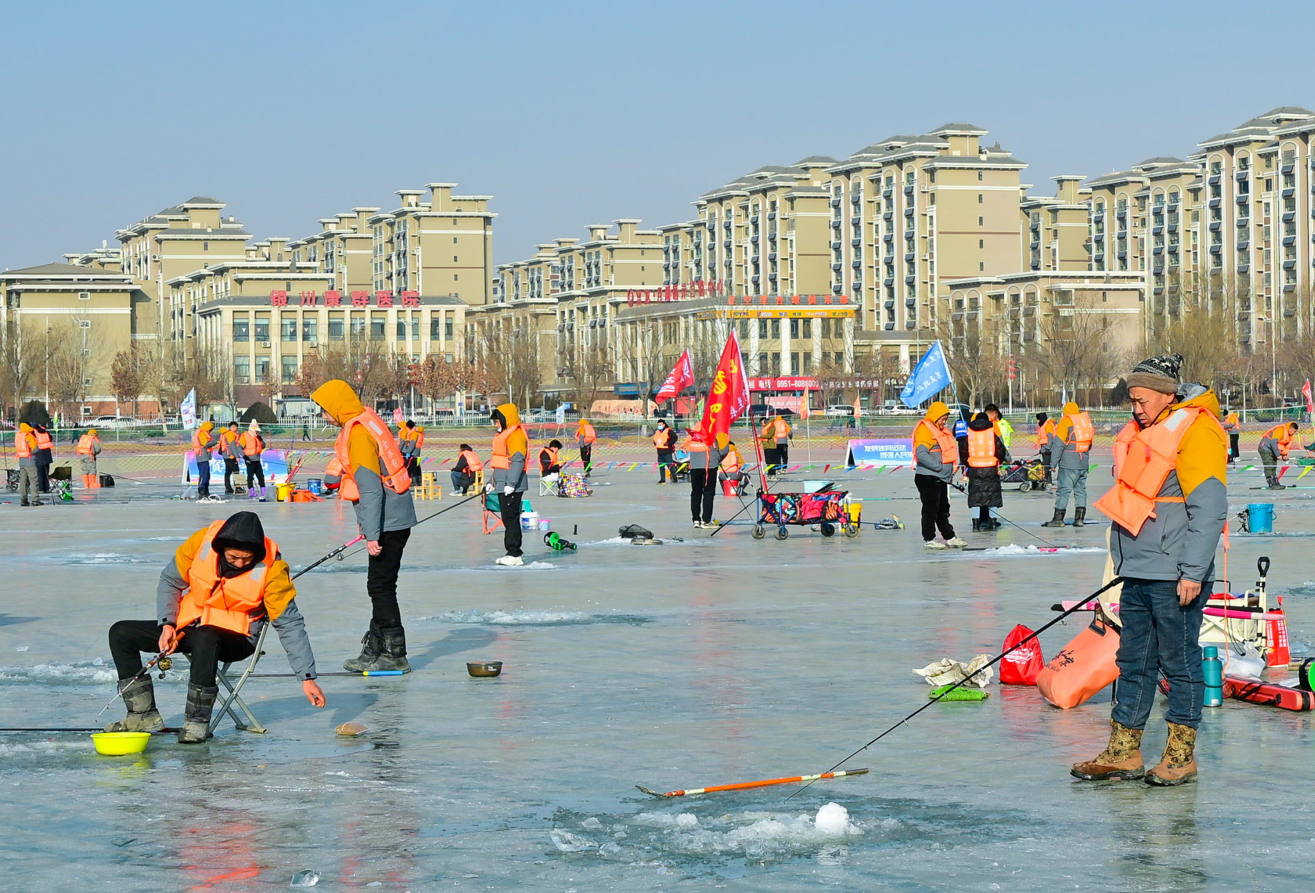 1月24日,2026年第十届全国自然水域冰钓赛在贺兰县如意湖开赛,600名垂钓爱好者齐聚冰封湖面同台竞技。 闫院平/摄