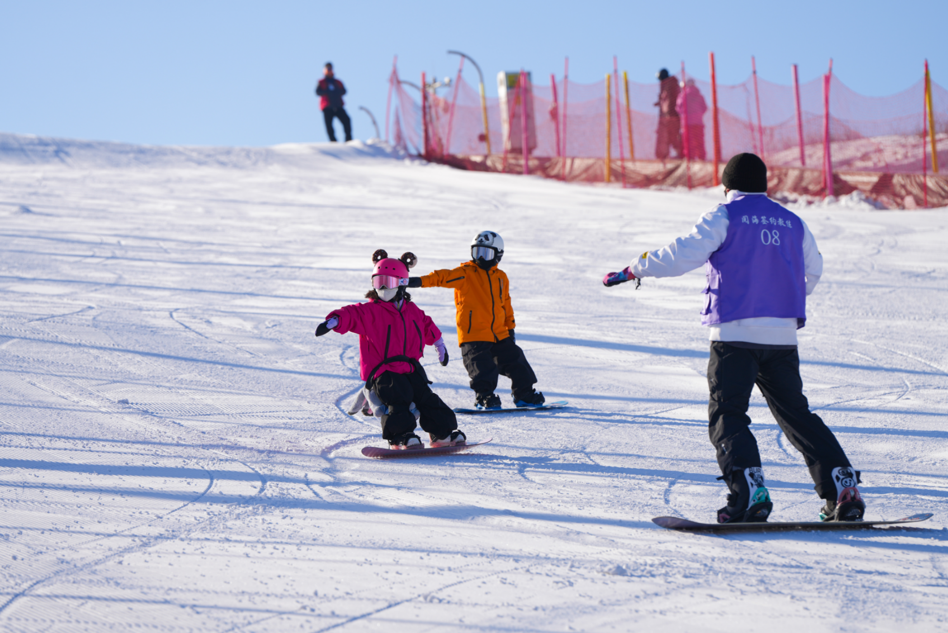 银川市立足自身优质的湖泊湿地资源,打造多样化的冰雪体验项目,让越来越多的人走出家门,在冰天雪地里享受运动的 快乐。图为银川文旅集团阅海滑雪场,教练正带领小朋友学习滑雪。 马驰/摄