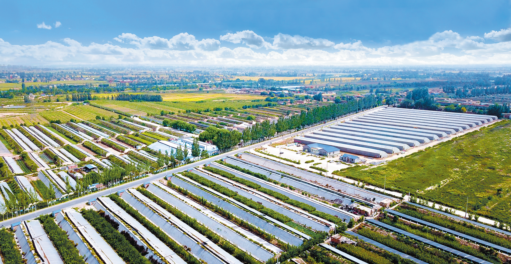 吴忠市利通区郭家桥乡山水沟村党支部领办合作社,发展村集体经济,着力发挥“一线指挥部”作用,实现党建引领富民强村,村庄发生了巨大变化。图为山水沟村特色果蔬产业示范基地。 吴忠市委组织部供图